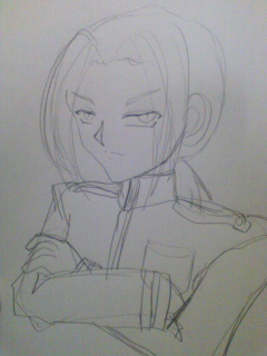 ゼロ様の恰好は一切資料見ず描いたので、見ればわかるとおり間違っています。思い出し笑いならぬ思い出し描きです(…)ゼロ様の髪型、および瞳の形は、このイラストを描きながらなんとなく決めていきました。この頃の彼は、まだ「甘えん坊将軍」とか言われる前ですwひたすらゼロ様カコイイ!!と思ってました。